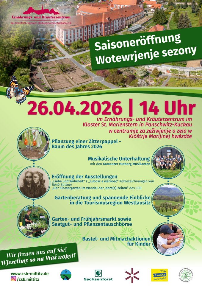 Am Sonntag, den 18. August 2024, traditionell nach Mariä Himmelfahrt, feierte das Christlich-Soziale Bildungswerk Sachsen e.V. (CSB) gemeinsam mit Äbtissin Gabriela Hesse, den Schwestern des Konvents und zahlreichen Besuchern den Kräutersonntag im Ernährungs- und Kräuterzentrum im Kloster St. Marienstern in Panschwitz-Kuckau.