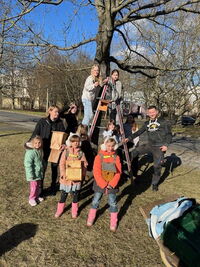 Auf der Kinder- und Jugendfarm des CSB e. V. in Hoyerswerda wurde in den letzten Wochen viel gesägt, gebohrt und geschraubt. Grund dafür war das Anfertigen verschiedener Nistkästen für Vögel und auch für Fledermäuse; so z.B. „Halbhöhlen“ für die Gartenrotschwänze und Höhlenkästen u.a. für Meisen.Bei schönsten Frühlingswetter wurden diese Kästen dann am 25. Februar 2026 in einem Hoyerswerdaer Park angebracht. Zunächst erfuhren die Kinder einige theoretische nützliche Informationen, wie z.B. die richtige Höhe und die richtige Ausrichtung der Kästen usw. Dann kam es zum praktischen Teil und die Kinder konnten Bernd Latta, Mitarbeiter der Kinder- und Jugendfarm und Organisator der Aktion, tatkräftig beim Anbringen der Kästen helfen.