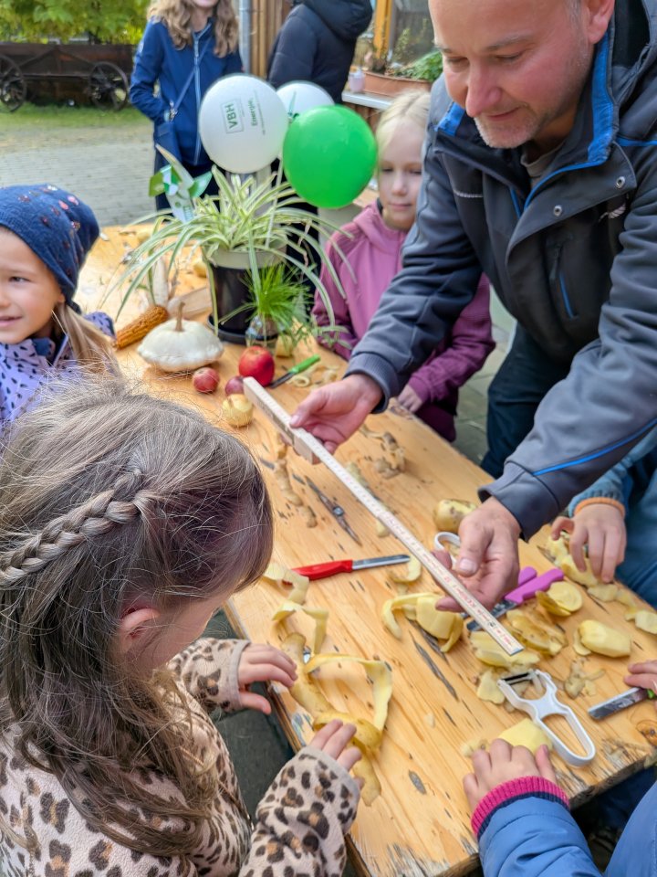 Auch getöpfert wurde in dieser Woche wieder. Herbstlichen Motive oder die Suche nach einem Geschenk zu Weihnachten lieferten die Ideen zum Gestalten verschiedenster Figuren. Der Herbst ist auch immer Erntezeit, auch bei uns wurde viel geerntet und verarbeitet. Vor allem waren Äpfel und Birnen in Mengen vorhanden, welche wir gemeinsam in der Apfelpresse zu leckeren Säften verarbeiteten. Auch die Kartoffel, die „tolle Knolle“, spielte in diesen Herbstferien eine besondere Rolle. In gemeinsamen Wettkämpfen wurde der höchste Kartoffelturm oder die längste Kartoffelschale gekürt.