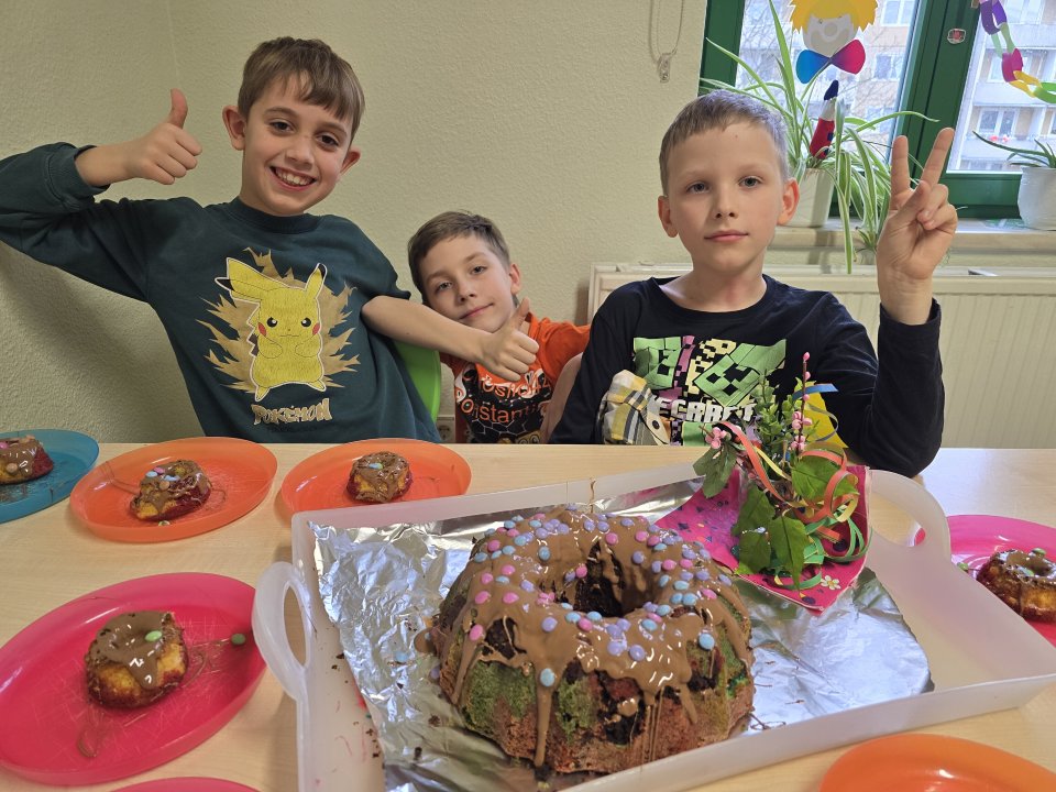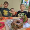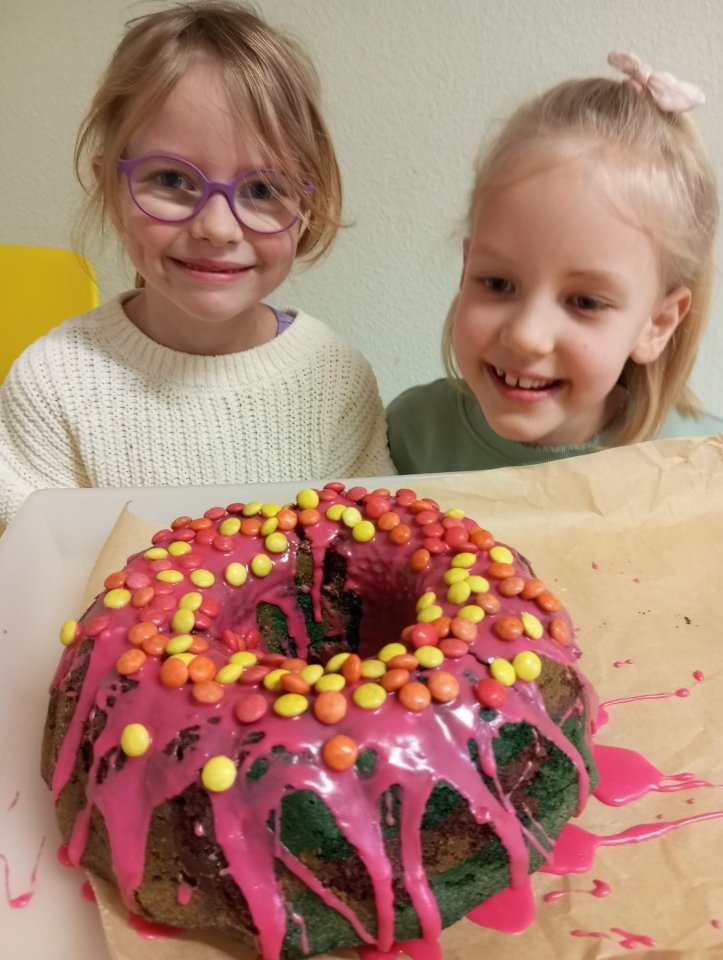 „Zuckersüß“ war der Vulkankuchen, den die Kinder unter der Woche gebacken haben. Mit ein bisschen Fantasie wurde hierbei aus Puderzucker, rotem Sirup die heiße flüssige Lava, verziert mit gelben, roten und orangen Smarties. Oder die Schokoladenglasur mit roter Grütze-Topping symbolisiert das vulkanische Gestein. Egal wie mit was, geschmacklich einfach Genuss pur.