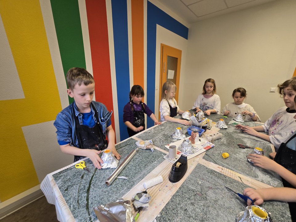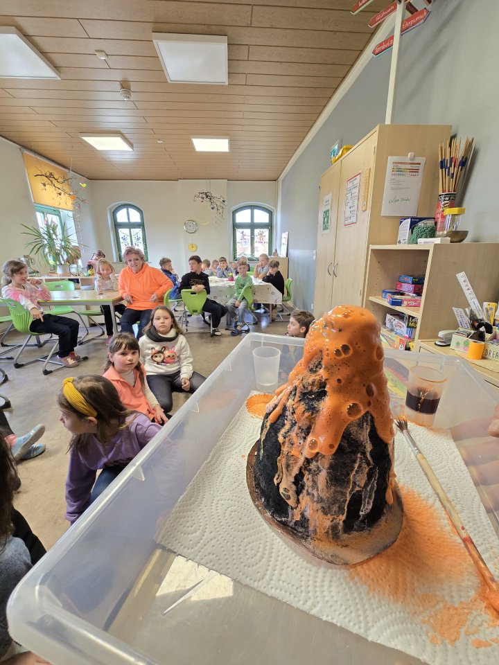 Eine Woche lang tauchten die Ferienkinder im Hort Wittichenau der CSBG GmbH in die Welt der Vulkane ein. Mit einem kleinen Erklär-Video starteten sie am Montag in den Tag und gingen der Frage nach, wieso Vulkane ausbrechen und die Erde bebt. So erfuhren sie zum Beispiel auch, dass es in Deutschland in der Eifel einen schlafenden Vulkan gibt und hörten von einem Geysir, der 2stündlich Wasserfontänen von 60 m Höhe spuckt.