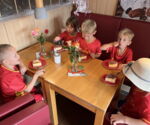 ... feierten wir am Freitag, den 24. Januar 2025 in Wiednitz. Die Kinder kamen wieder extra schick zur Feier. Mit Vogelliedern und Tänzen eröffneten wir diesen besonderen Tag. Dann wurde ausgiebig an einer gemeinsamen Hochzeitstafel gefrühstückt. Übrigens einige Lebensmittel, die auch Vögel gern fressen- Haferflocken, Beeren, Körner…