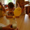 Mit Essig und Backpulver ließen wir einen Geist (Luftballon) aus der Flasche wachsen.