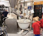 Vor dem Mittagessen erklärte uns Frau Nestler noch, wie der Hofkäse gemacht wird. Zwei Sorten durften wir probieren – der „Krabatello“ war bei den Kindern der klare Favorit! In der Schaukäserei konnten wir sogar einem Mitarbeiter bei der Arbeit zusehen.