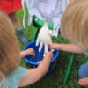 Nun wurden die Kinder kurzerhand zu Müll-Inspektoren. Sie bekamen Handschuhe und überprüften den Inhalt unserer gelben Tonne. Haben wir alles richtig entsorgt? Nein, ein paar Dinge gehörten da tatsächlich nicht hinein.