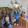 Die Kinder haben Kühe gemalt, gebastelt, Geschichten von „Lieselotte“ gehört, Butter selbst hergestellt und einen spannenden Film über Milch gesehen. Dabei lernten sie, dass Kühe vier Mägen haben und Wiederkäuer sind. Und zum Abschluss durften alle noch versuchen, an unserem selbstgebauten „Kita-Euter“ zu melken – was für ein Spaß!