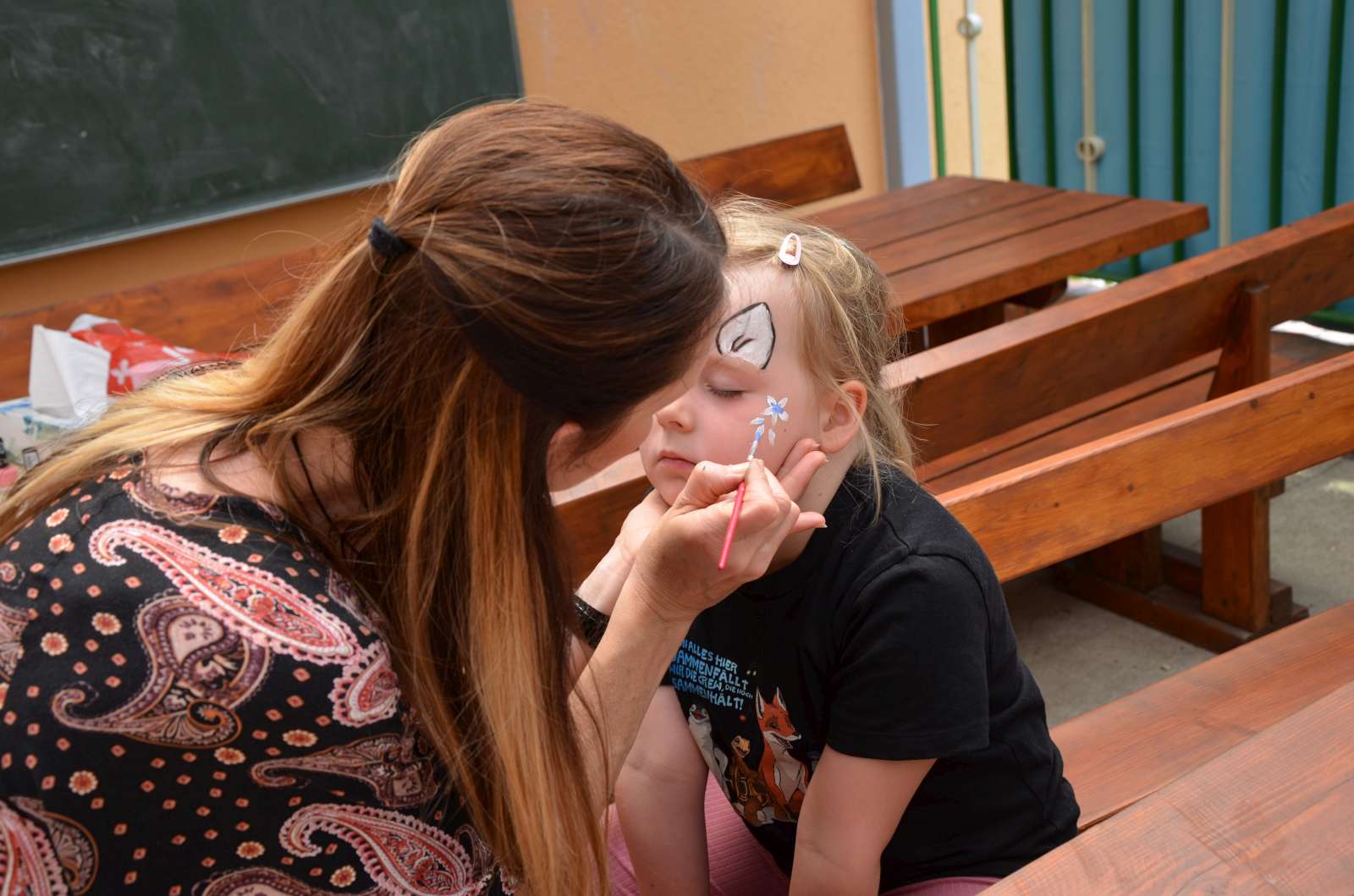 Am Donnerstag, den 4. Juli 2025, verwandelten sich die Kinder an einem Beauty-Vormittag in bunte Fantasiewesen. Auf ihren besonderen Wunsch wurden sie geschminkt und die Finger mit Nagellack verziert. Unsere Schulanfängerin Paula übernahm auch eine Station. Sie verzierte die Kinder mit Tattoos.