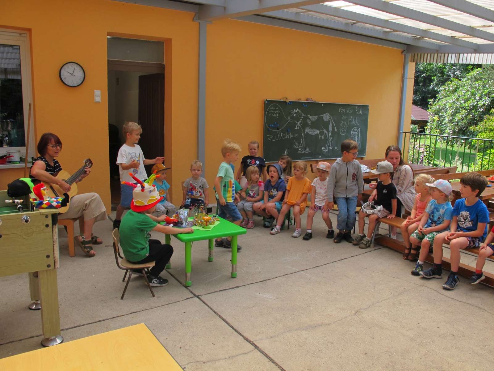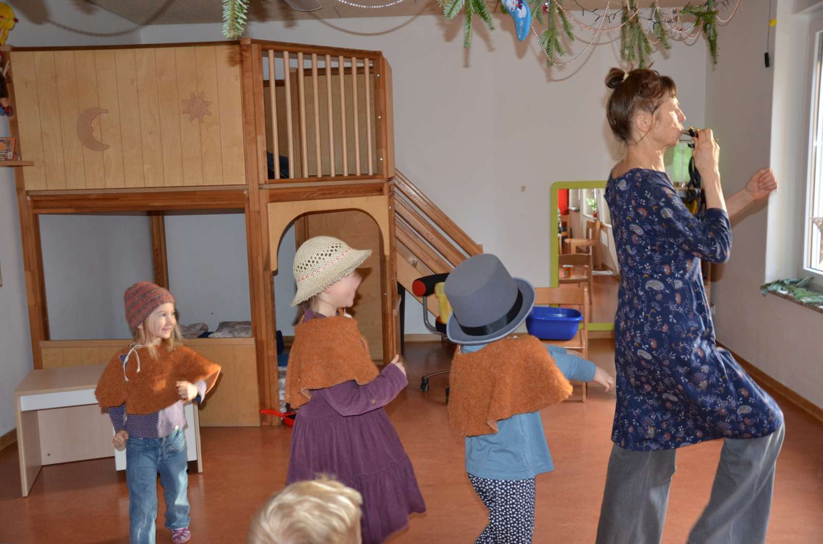 Die älteren Kinder führten feierlich das bekannte Vogelhochzeitslied auf und unsere Jüngsten spielten „Die drei Spatzen“ und „Kleine Meise“.