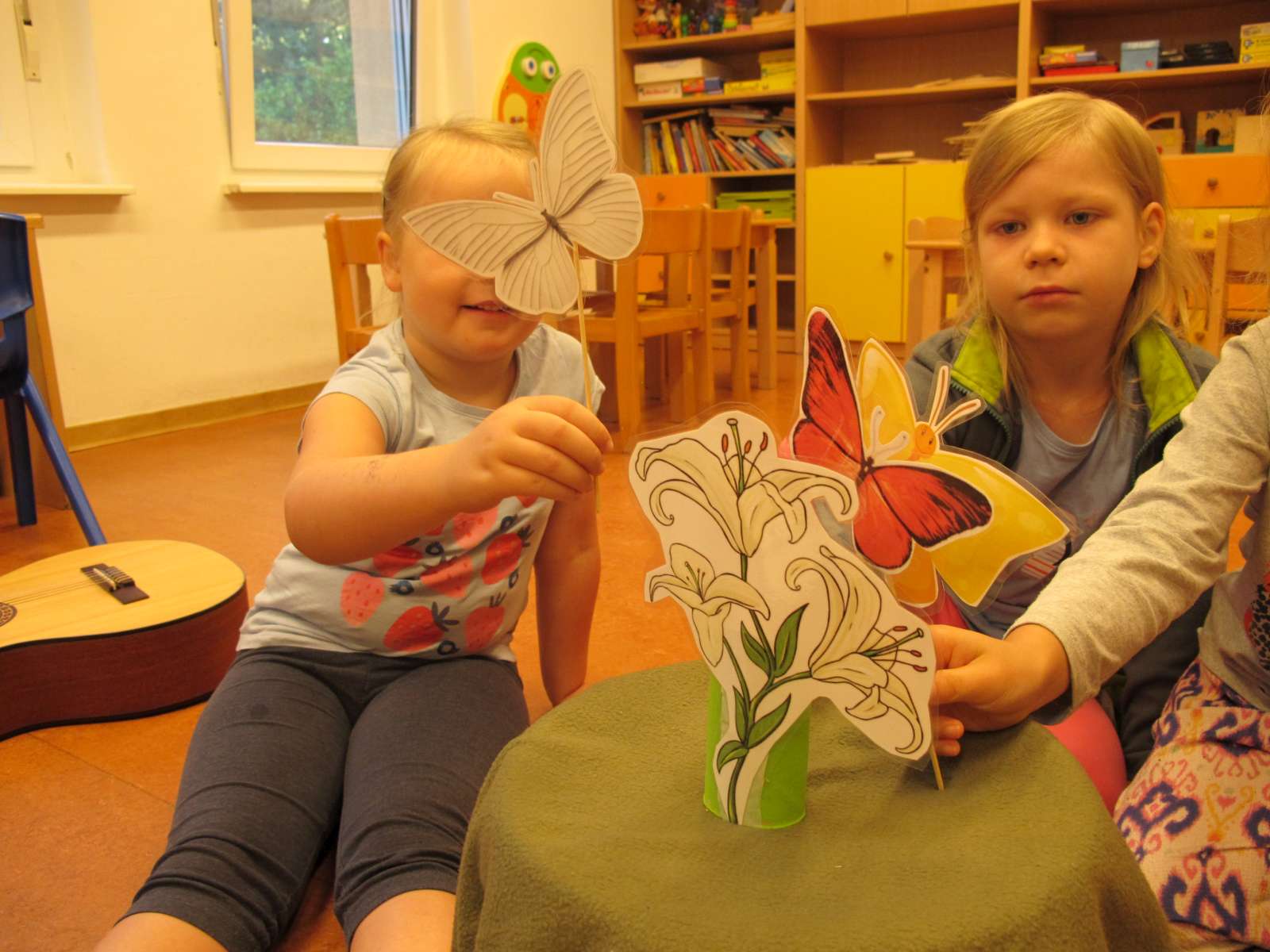 Wir gingen der Frage nach: Wie entsteht ein Schmetterling? Der Zauber seiner Verwandlung vom kleinen Ei zum flatternden Insekt begeisterte die Kinder. Immer wieder wollten sie die Geschichte der „Raupe Nimmersatt“ hören, auch in musikalischer Form. Zum Morgenkreis sangen wir oft das gleichnamige Lied von Stephen Janetzko.