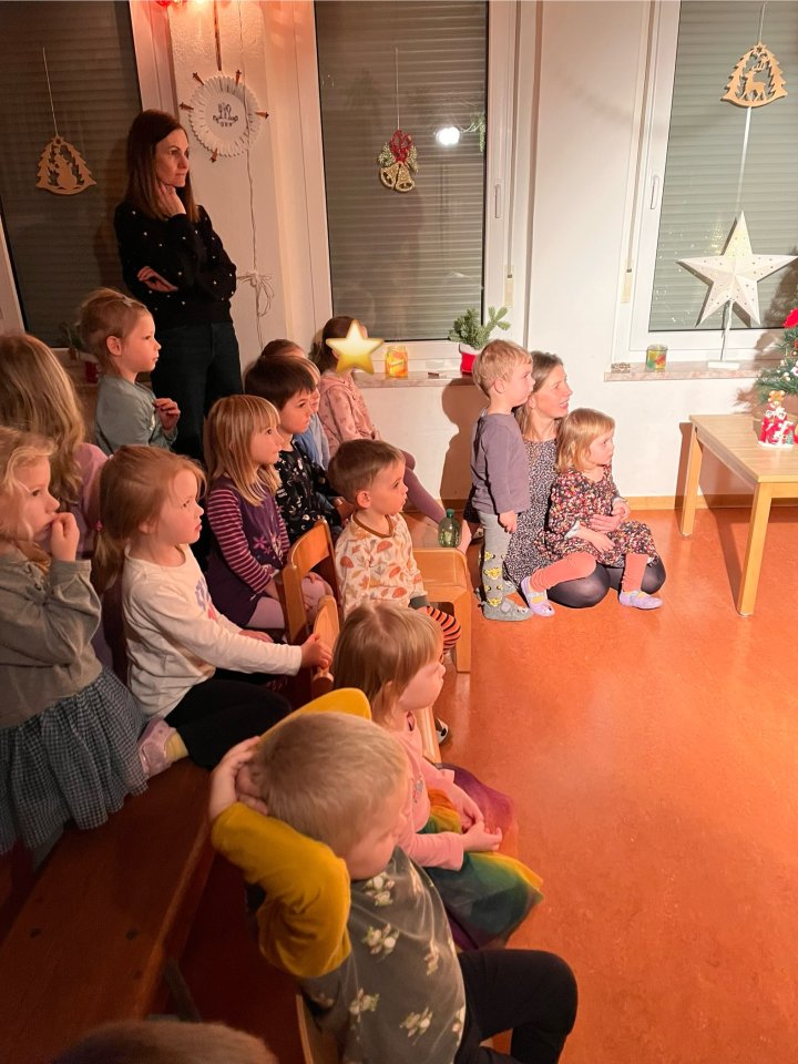 Am 21. November 2025, dem Bundesweiten Vorlesetag, bekamen wir wieder Besuch von unserer Lesepatin Gabi Schaar. Die Vorschüler hatten den Raum liebevoll vorbereitet, mit Decken und Kerzen eine gemütliche Leseecke geschaffen. Dann lauschten sie gespannt der Geschichte „Schuleule Paula“.