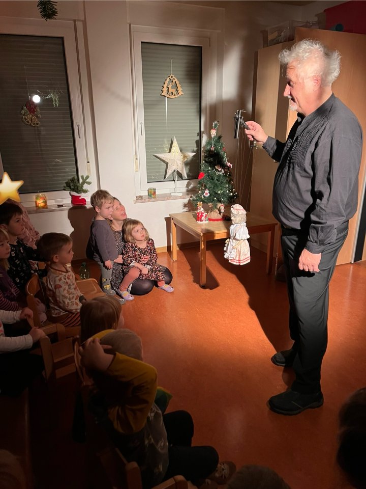 Am 1.Dezember 2025 begrüßten wir den Puppenspieler Tobias Klug aus Dresden in unserer Kita. Er spielte für unsere kleinen und großen Kinder das Märchen „Frau Holle“ und entführte uns damit in die Winterwelt – eine schöne Einstimmung auf die Weihnachts- und Winterzeit.