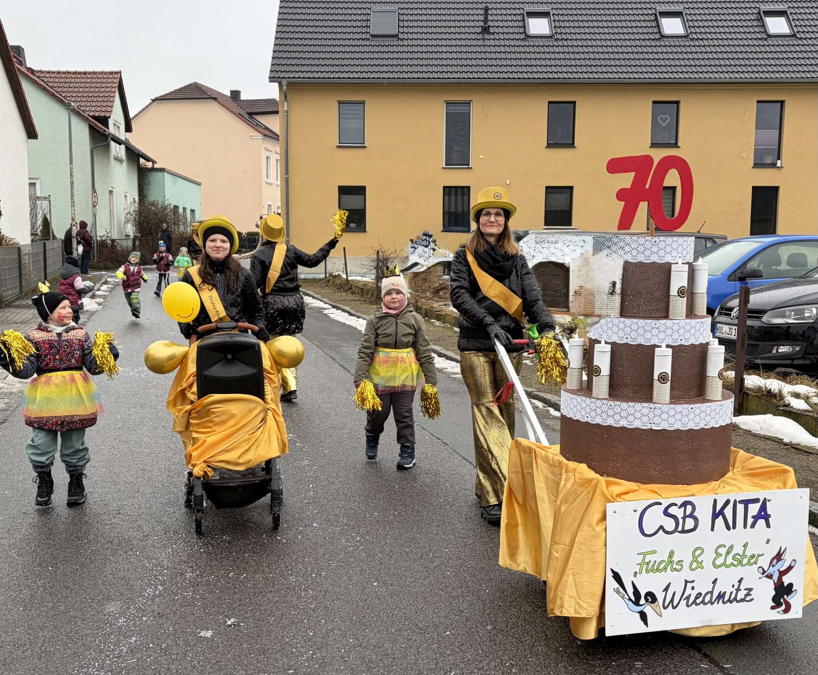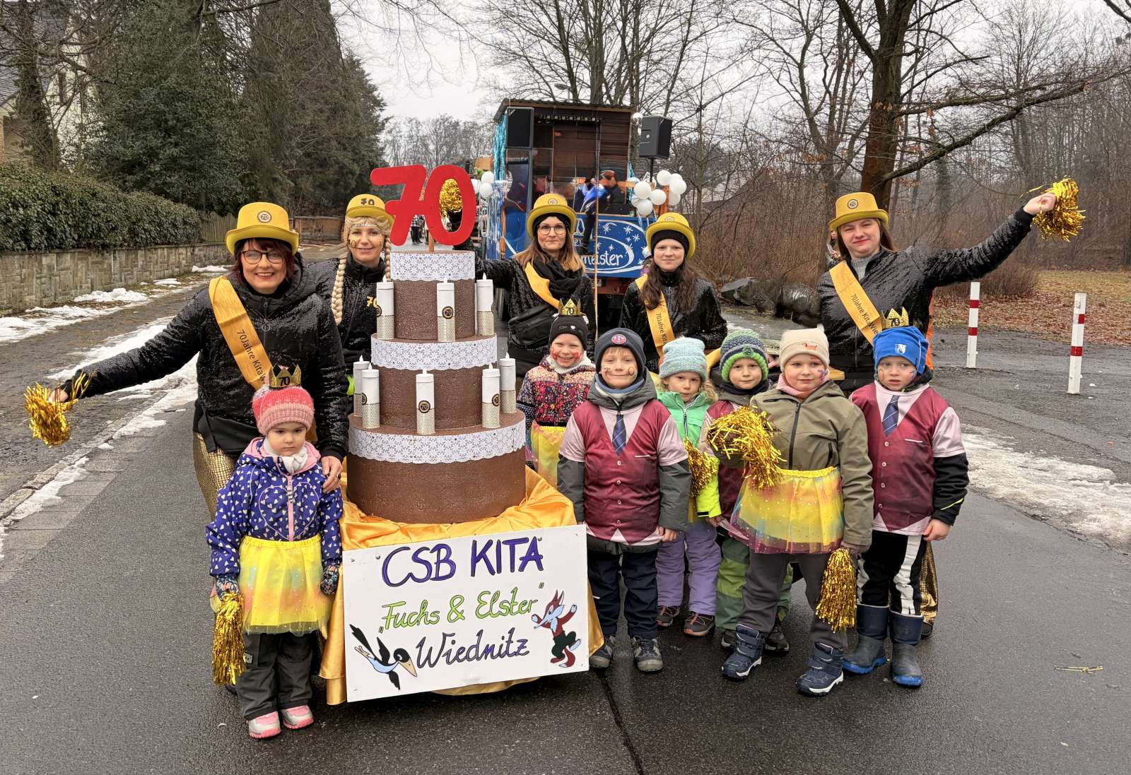 Premiere für unsere Kita! Am 2.März 2025 nahmen wir das erste Mal am großen Karnevalsumzug in Bernsdorf teil. Als Fuchs und Elster verkleidet präsentierten wir unsere Wiednitzer Einrichtung. Danke an die Karnevalskinder Marlene, Filip, Mathilda, Sophia und Anton, die fröhlich mit uns durch die Straßen zogen.