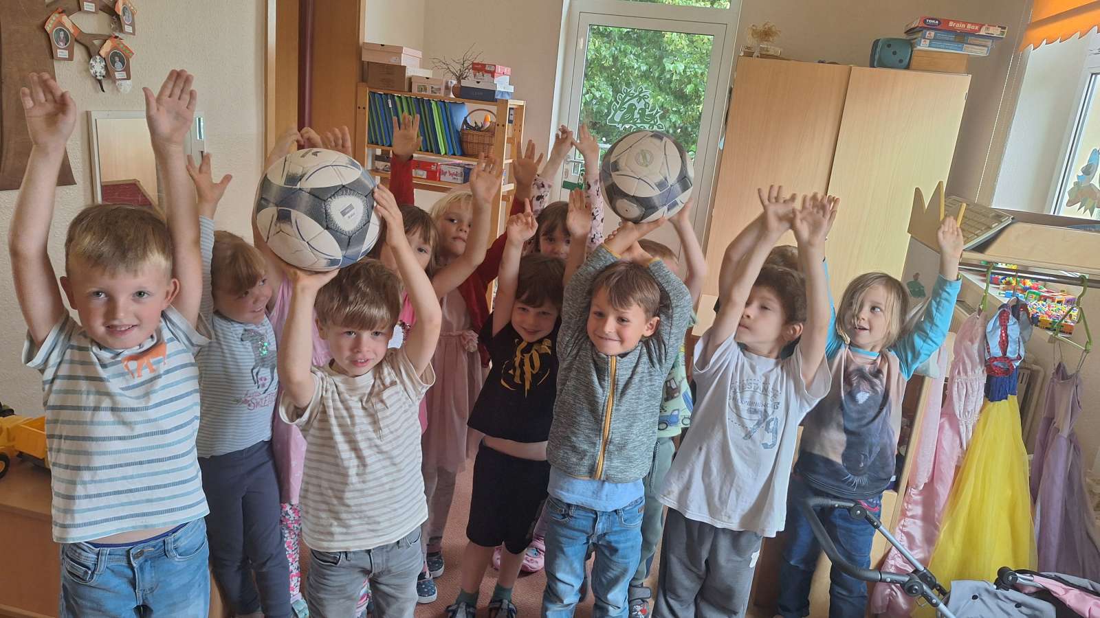 Die Freude war groß, als die Trainer der ersten Männermannschaft vom DJK Blau-Weiß Wittichenau uns mit neuen Fußbällen überraschten.