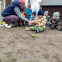 Danach standen weitere Osterbräuche auf dem Programm. Die Mädchen der Fuchsgruppe gingen das Osterwasser holen. Dabei ist es wichtig, dass die Mädchen ganz still sind während sie das Wasser schöpfen und dieses in die Kita tragen. Das Interesse der Jungen besteht natürlich darin, die Mädchen zu erschrecken um sie zum Reden zu animieren und dabei das Wasser in Plapperwasser zu verwandeln. In der Zwischenzeit führten alle anderen Gruppen im Stationsbetrieb weitere Bräuche aus, wie das Eierwalleien und das Eierlaufen. So ging ein wunderschöner Vormittag zu Ende und alle freuen sich schon auf ein nächstes Mal.