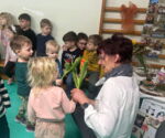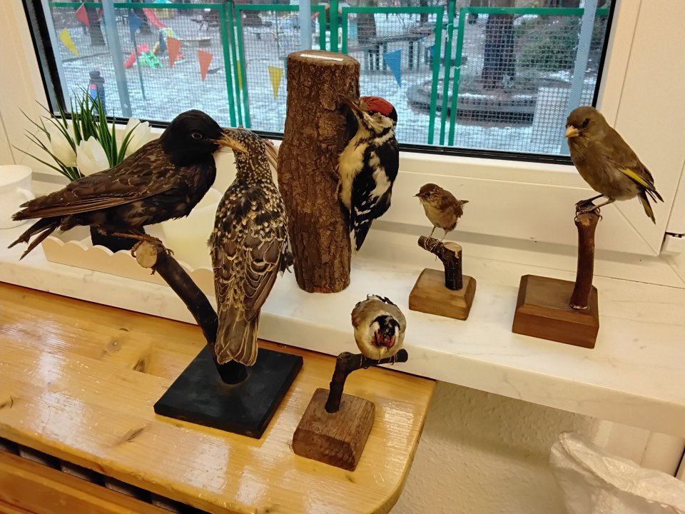 Interesse an der heimischen Vogelwelt und ihrem Schutz zeigte Herbert Schnabel schon in früher Jugend. Das notwendige Rüstzeug dazu erhielt er in der „Naturschutzschule“ von Heinz Kubasch in der Naturschutzstation Gräfenhain. Jetzt ist er bereits Rentner aber immer noch aktiv. Gleich nach der Vogelhochzeit besuchte er die Kita um Ihnen die verschiedenen Vogelarten zu zeigen. Zunächst hörten sie erst den Gesang der Vögel. Danach durften sie die Tiere hautnah erleben, aber natürlich ausgestopft. Geholt hatte er sich die wunderschönen Exemplare im Museum der Westlausitz in Kamenz. Elster, Amsel, Drossel, Fink und Star, alle waren dabei. Auch der Uhu und die Enten. Das Lied der Vogelhochzeit haben die Kinder daraufhin sofort angestimmt, worüber sich Herr Schnabel sehr freute.