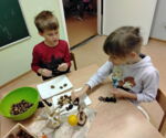 Alle Kinder der Kita beschäftigten sich in den letzten Tagen mit Tieren des Bauernhofes. Die Krippenkinder ordneten Tiere nach deren Aussehen und Geräuschen den Bildkarten zu, bauten einen Bauernhof und lernten das Lied „Onkel Paul wohnt auf dem Land“.