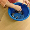 In dieser Woche begab sich die Spatzengruppe auf Entdeckerreise. Dabei gab es folgenden Versuch: Zwei Schüsseln Wasser wurden bereitgestellt. Nun durften die Kinder das Kleinspielzeug ihrer Wahl ins Wasser legen. Eine Schüssel wurde von Ihnen in das Gefrierfach gestellt und eine blieb im Zimmer.