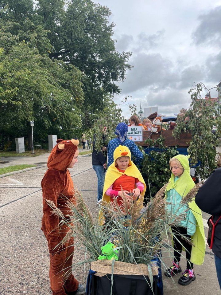 Die Kinder der Fuchs-Gruppe unserer Kita waren mit großer Freude beim diesjährigen Umzug zum Sächsischen Landeserntedankfest in Hoyerswerda dabei. Passend zu unserem Namen und dem Thema „Natur, Umwelt und Lebensraum Wald“ war unser Motto: „Die Kita Waldsee als Naturspielhaus“.