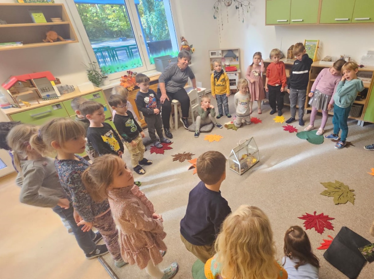 Bei spannenden Naturerkundungen entdeckten die Kinder, warum sich die Blätter färben, welche Früchte und Samen im Herbst wachsen und was es auf den Waldwegen alles zu sehen gibt. Auch die Igelkunde war ein echtes Highlight: Gemeinsam lernten sie, wie der Igel lebt, was er frisst, wie er sich auf den Winterschlaf vorbereitet und wie man ihm im Garten helfen kann.