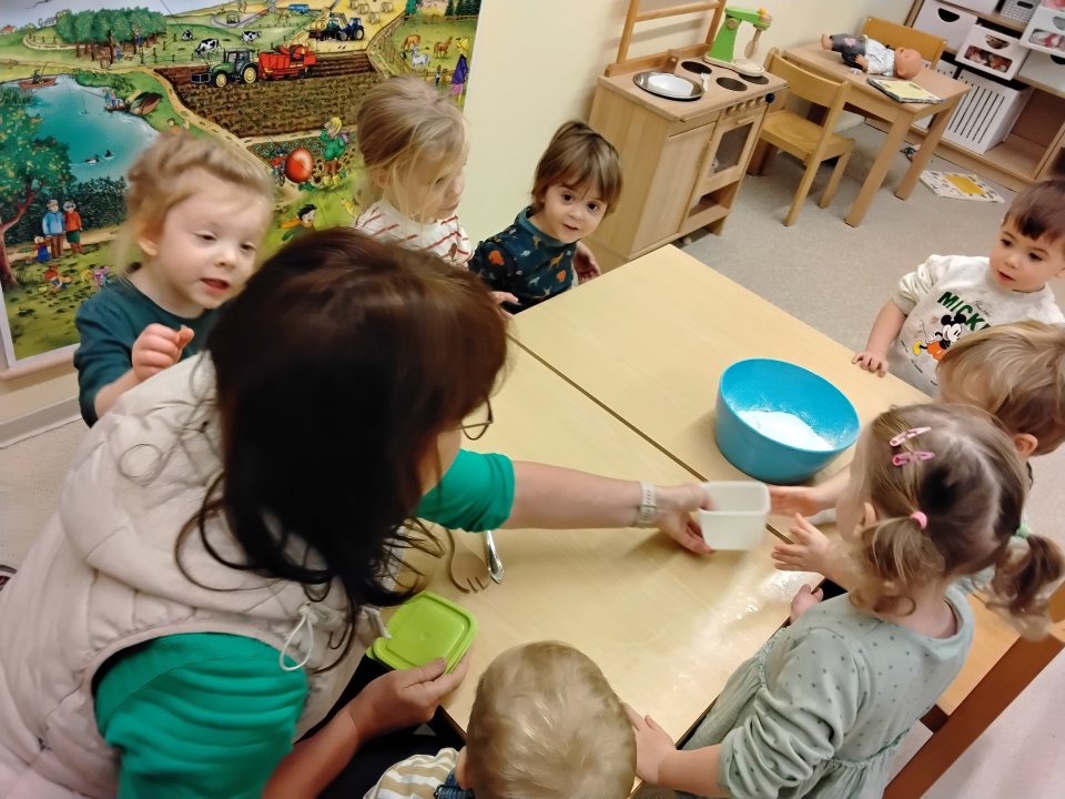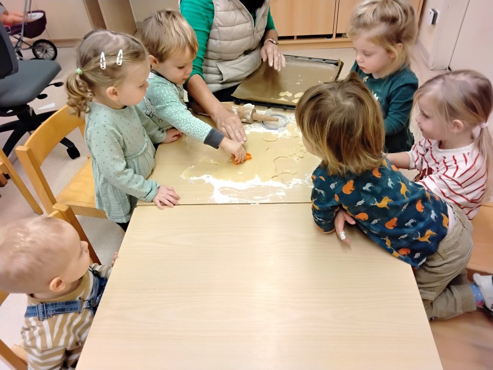 Heute waren die Kinder der Froschgruppe unserer Kita ganz in Backlaune! Gemeinsam wurden frische Kekse gebacken – und dabei hatten sie jede Menge Spaß. Mit viel Freude beim Abmessen, Rühren und Formen des Teigs konnten die Mädchen und Jungen spielerisch ihre Feinmotorik trainieren und Teamarbeit üben. Unter der geduldigen Anleitung der Erzieherinnen ging das alles ganz einfach.