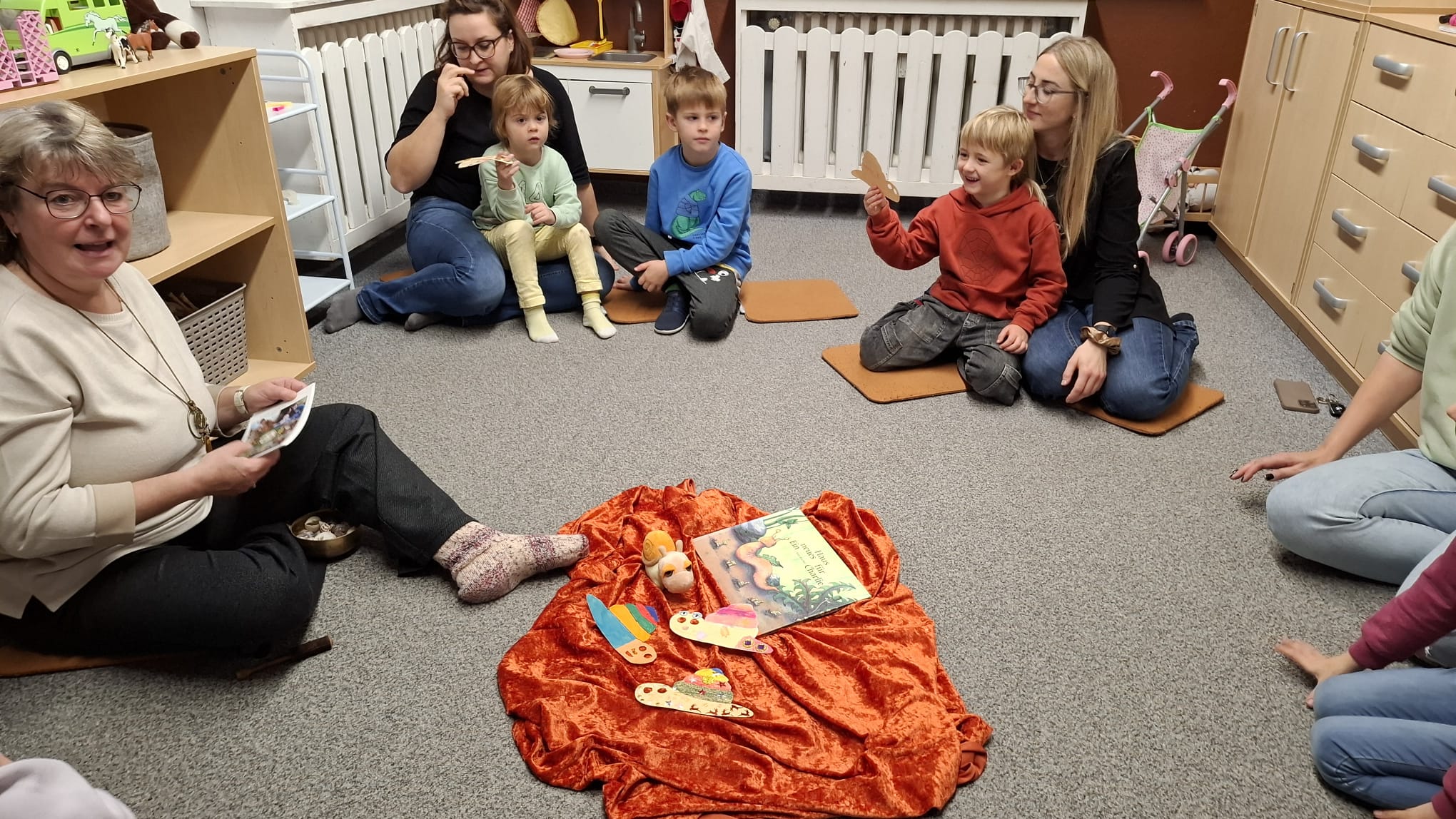 Unter der Anleitung von Frau Kuhn erlebten die Teilnehmer, wie Charlie ein neues, sicheres Zuhause bekommen könnte. Die Aktivität wurde durch altersgerechte Leseübungen, bildnerische Gestaltung und gemeinsames Erzählen gestaltet, sodass alle Anwesenden aktiv eingebunden waren.