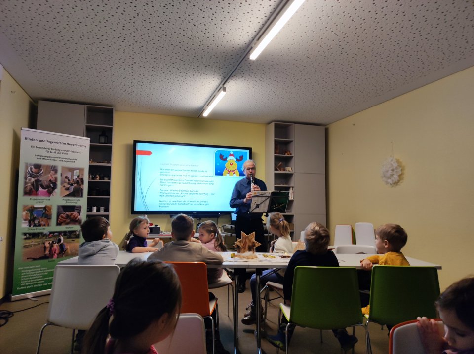 Ja, aber keine Vierbeiner – die Kinder der Fuchsgruppe unserer Kita fuhren gestern zur Kinder- und Jugendfarm und erlebten dort einen tollen abwechslungsreichen Tag. Vom Füttern der Tiere, über das Backen von Brötchen und Keksen, Basteln kleiner Weihnachtsgeschenke bis zum Singen von Weihnachtsliedern – begleitet von Flöte und Akkordeon – war alles dabei.