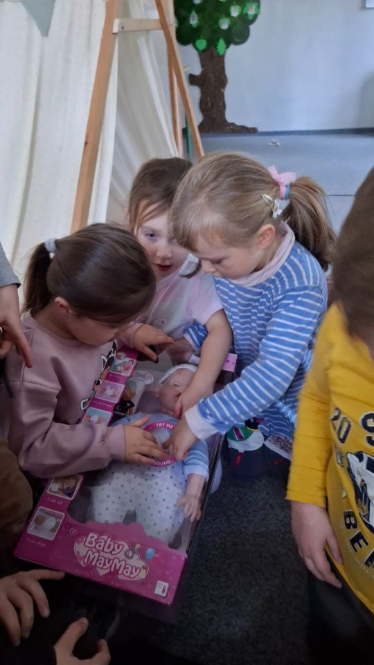 Passend dazu brachte Frau Meyenberg-Zagorski viele anschauliche Materialien, Figuren und Bücher rund um den Igel mit. Die Kinder hörten aufmerksam zu, stellten interessiert Fragen und staunten über das ungewöhnliche Tier. Besonders spannend war der Moment, als der Igel sich langsam bewegte und die Kinder seine kleinen Beinchen und Schnauze entdecken konnten.