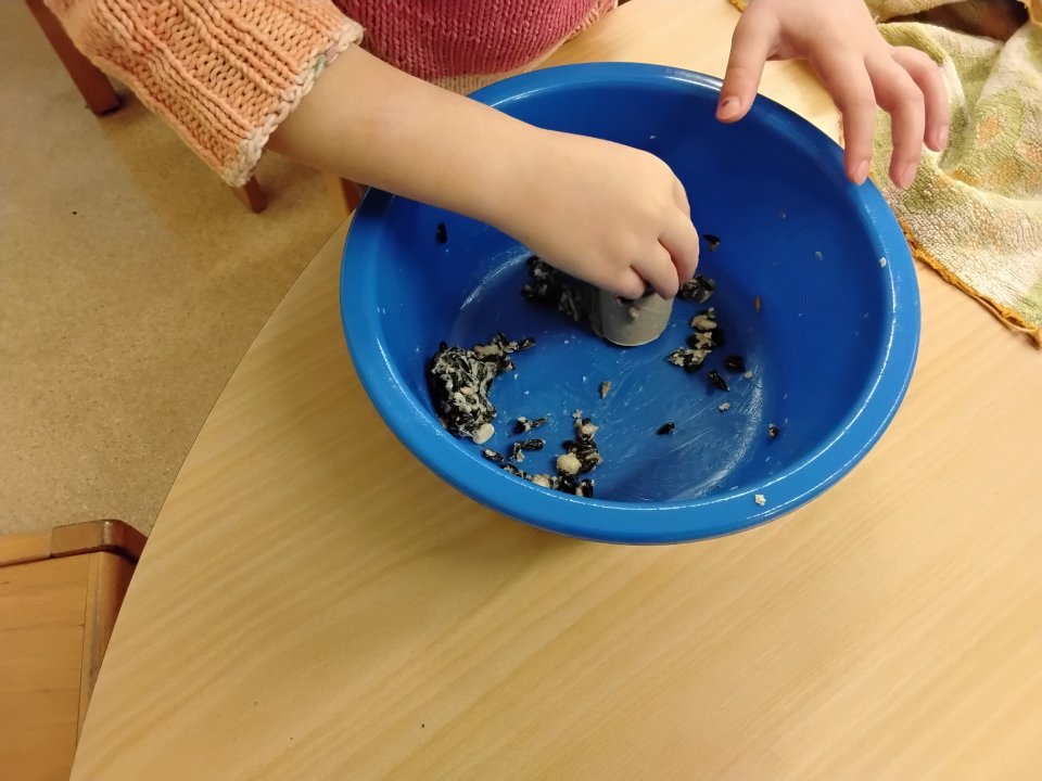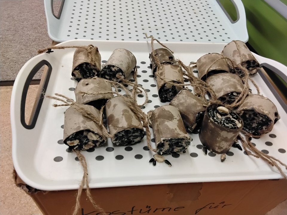 Zum Schluss durften alle selbst aktiv werden: Mit viel Freude stellten die Kinder Vogelfutter her. So konnten sie gleich etwas Gutes für die Natur tun und das Gelernte spielerisch umsetzen.