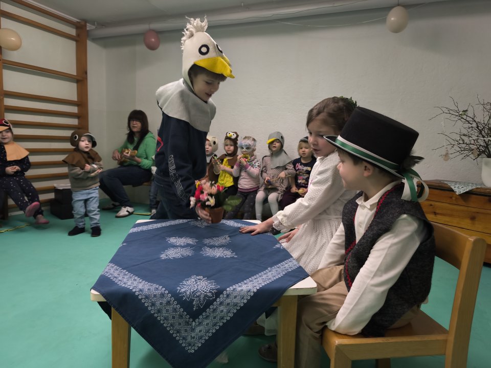 Im Anschluss stimmten sich alle mit fröhlichen Frühlingsliedern auf das Fest ein. Die Kinder sangen begeistert mit und sorgten für eine lebendige und ausgelassene Stimmung.