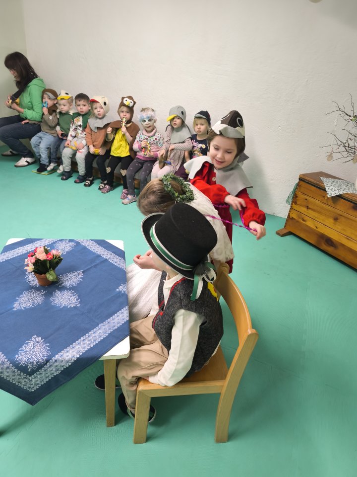 Durch gemeinsames Singen, Tanzen und kleine Rollenspiele konnten die Kinder die Vogelhochzeit auf eine spielerische und altersgerechte Weise erleben. Sie beteiligten sich aktiv am Geschehen und lernten so auf spannende Weise den Ablauf der Vogel-Hochzeit kennen.
