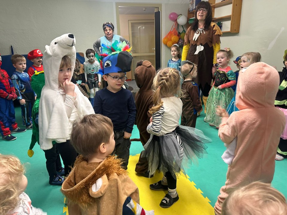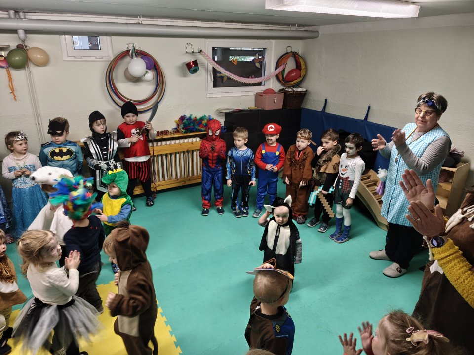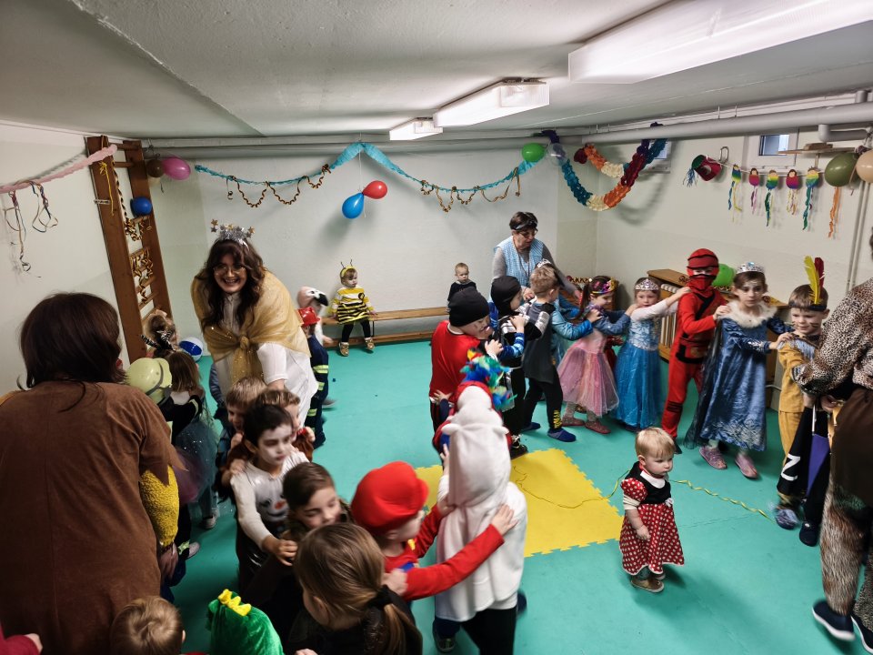 Schon am Morgen staunten die Kinder über die vielen fantasievollen Kostüme. Prinzessinnen, Superhelden, Feuerwehrleute, Tiere und viele weitere kreative Verkleidungen verwandelten unsere Räume in eine zauberhafte Faschingswelt.