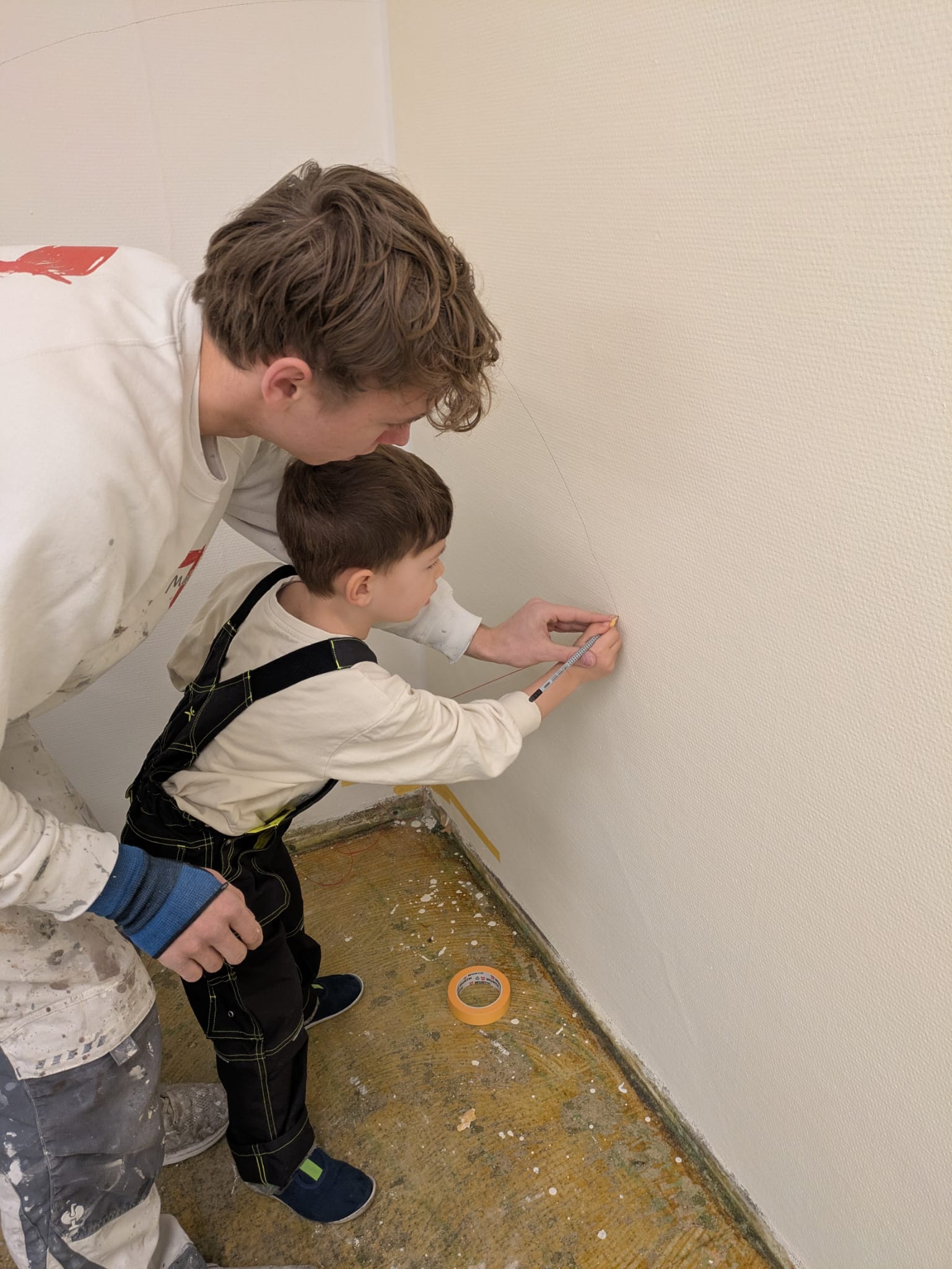 In unserer Kindertagesstätte wurde es in den letzten Tagen besonders kreativ und handwerklich: Unter dem Motto „Kleine Hände, große Zukunft“ hatten unsere Kinder die Möglichkeit, ein echtes Handwerk kennenzulernen – das Malerhandwerk. Ausgangspunkt des Projekts war ein ganz praktischer Anlass: Das Gruppenzimmer der Ameisen sollte renoviert werden. Schnell entstand die Idee, die Kinder aktiv in diesen Prozess einzubeziehen und ihnen so einen lebensnahen Einblick in die Welt der Berufe zu ermöglichen. Mit dem örtlichen Malerbetrieb Z-Malerei konnten wir dafür einen engagierten Partner gewinnen, der das Projekt tatkräftig unterstützte und fachlich begleitete. Über einen Zeitraum von drei Tagen begleiteten zwei Auszubildende des Betriebs das Projekt und arbeiteten gemeinsam mit den Kindern an der Neugestaltung des Raumes. Dabei stand das eigenständige Tun im Mittelpunkt. Die Kinder durften Farbe anrühren, Werkzeuge kennenlernen und selbst zur Farbrolle greifen. Mit großer Begeisterung und viel Neugier machten sich die Kinder ans Werk. Sie erlebten hautnah, wie aus einzelnen Arbeitsschritten nach und nach ein sichtbares Ergebnis entsteht. Dabei wurden nicht nur handwerkliche Fähigkeiten gefördert, sondern auch wichtige Kompetenzen wie Geduld, Teamarbeit und Ausdauer gestärkt. Das Projekt bot den Kindern eine wertvolle Gelegenheit, ihre Umwelt aktiv mitzugestalten. Sie erfuhren, dass ihre eigene Arbeit Bedeutung hat und sichtbar etwas bewirken kann. Dieses Gefühl von Selbstwirksamkeit ist ein wichtiger Baustein in der kindlichen Entwicklung. Zudem konnten die Kinder erste Einblicke in die Berufswelt gewinnen. Sie lernten, was es bedeutet, als Maler zu arbeiten, welche Materialien benötigt werden und wie wichtig sorgfältiges Arbeiten ist.