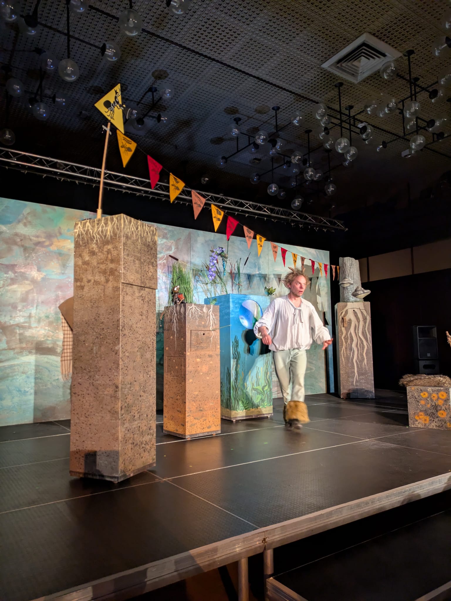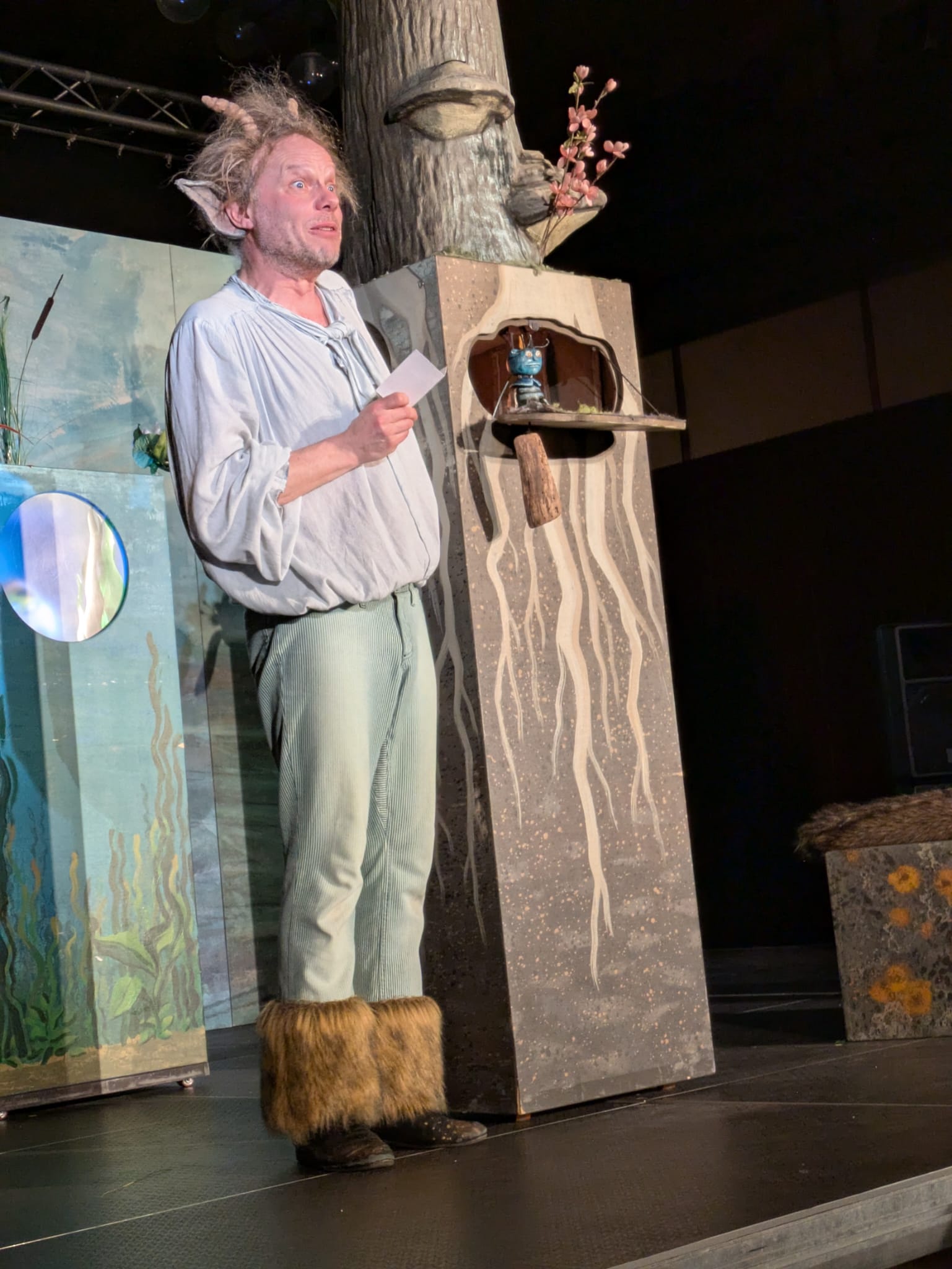 Mit großer Spannung verfolgten die Kinder die Aufführung auf der Bühne. Das bunte Bühnenbild, die liebevoll gestalteten Figuren und das lebendige Spiel der Darstellerinnen und Darsteller sorgten für viele staunende Momente. Die Geschichte war altersgerecht erzählt und begeisterte durch Humor, Musik und anschauliche Szenen.