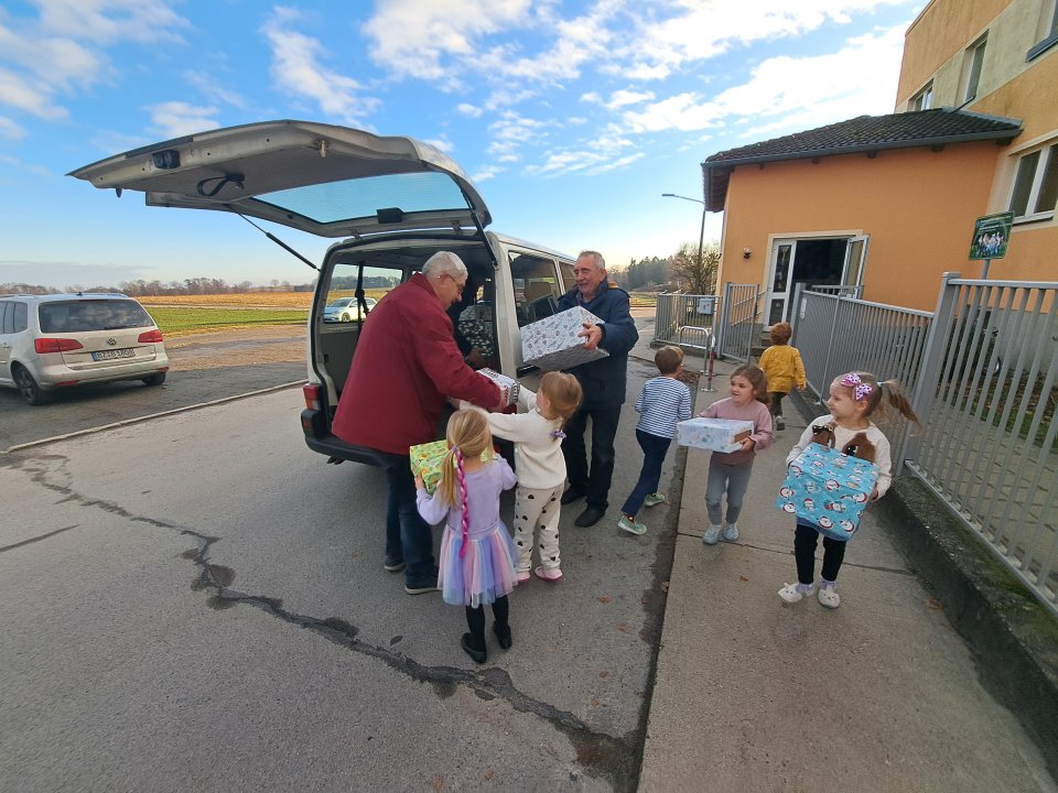 Am Mittwoch, den 3. Dezember 2026 wurden die in der Kita gesammelten Weihnachtspäckchen durch Herrn Robel und seine engagierten Helfer für den St.-Filomena-Verein abgeholt. Mit großer Freude und erstaunlichem Einsatz packten die Kinder tatkräftig mit an und halfen dabei, die zahlreichen Päckchen in den Transporter zu verladen.