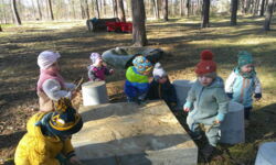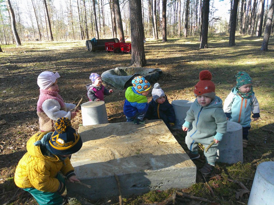 Dort angekommen wurde erst einmal eine kleine Pause eingelegt. Mit leckerem Salzgebäck stärkten sich alle, bevor es auf Entdeckungstour ging. Der Wald bot jede Menge spannende neue Eindrücke: über den weichen Waldboden laufen, Stöcke sammeln und mit Naturmaterialien spielen und experimentieren – für die Kinder ein echtes Abenteuer.