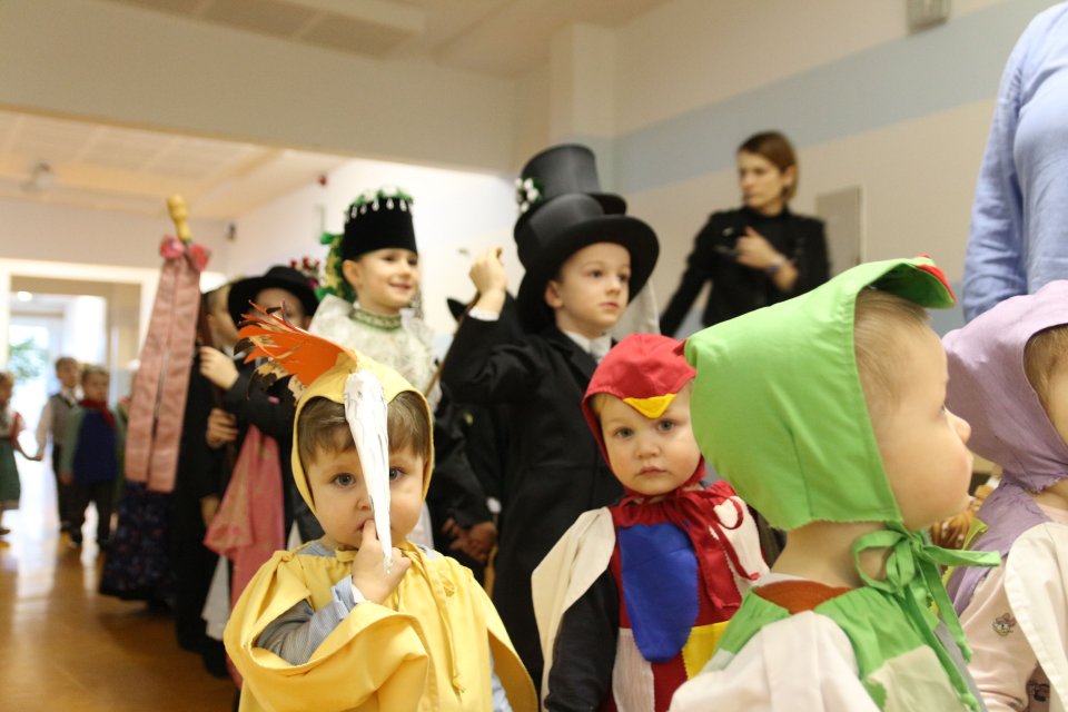 In diesem Jahr wurde den Kindern die Vogelhochzeit aus einer anderen Perspektive vorgestellt. Die Geschichte erzählte aus der Sicht des Igels Stachelchen, der normalerweise Winterschlaf hält aber unbedingt ein einziges Mal die Vogelhochzeit mit feiern möchte. So kam es, dass jemand den Schlafsand vom Sandmännchen heimlich vertauscht hat und nicht der Igel zum Winterschlaf gebracht wurde, sondern der Bräutigam.