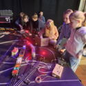 In den großen Klassen drei und vier wurde ein spannendes Seifenblasenexperiment mit Aquatinte durchgeführt. Es sind ganz viele bunte Bilder entstanden.