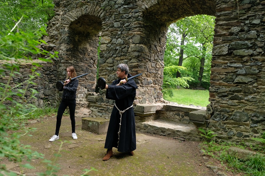 Mönch Liutger, alias Sven Richter, wird mit Kutte, Schild und Schwert erscheinen. Alle, Jung und Alt, die schon immer einmal das Fechten wie in „Mantel- und Degen-Filmen“ ausprobieren wollten, wird er in die Kunst des Schwertfechtens einführen.